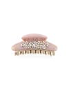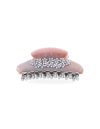 メタル細工の繊細な小花にマーブル模様の淡いピンクとゴールドラメをあしらったクリップ。