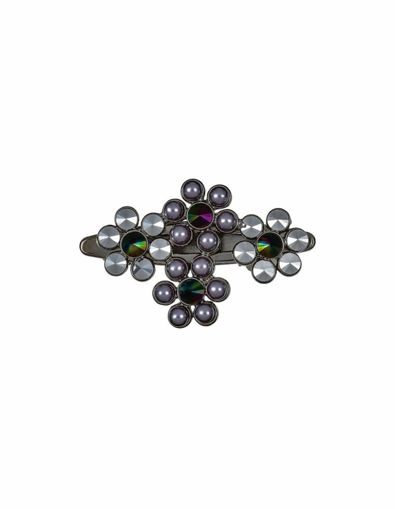 ・メタルにパールのやわらかいツヤ感を​プラスしたクールでエレガントなフラワークリップです​。