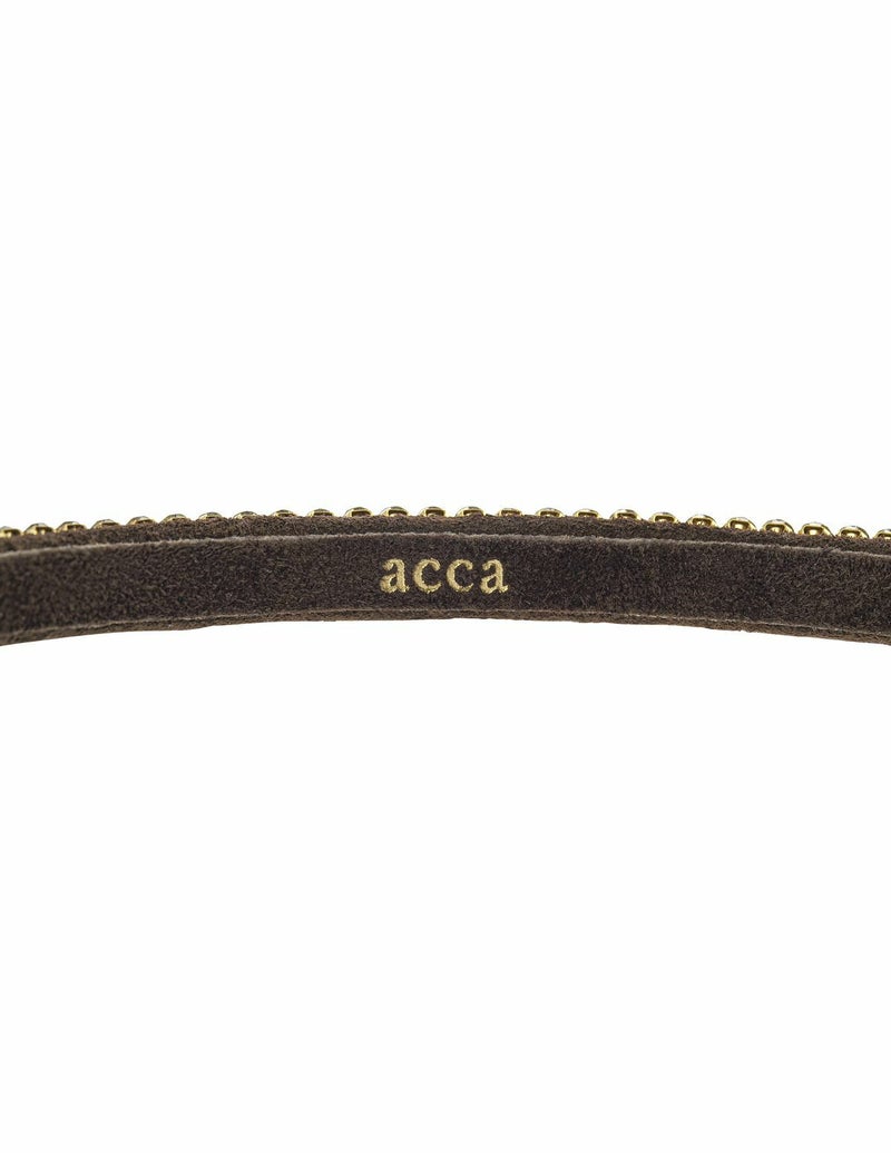 洗練性とシンプルなデザインで完成したオードリーカチューシャは、ACCAのロングセラーアイテムです。髪と肌に映えるスエードのカラーとモノカラーのクリスタルガラスの心地よい組み合わせは毎日のヘアスタイリングが自然で華やかな雰囲気になります。ジュエリーとコーディネートして華やかな場にも適しています。