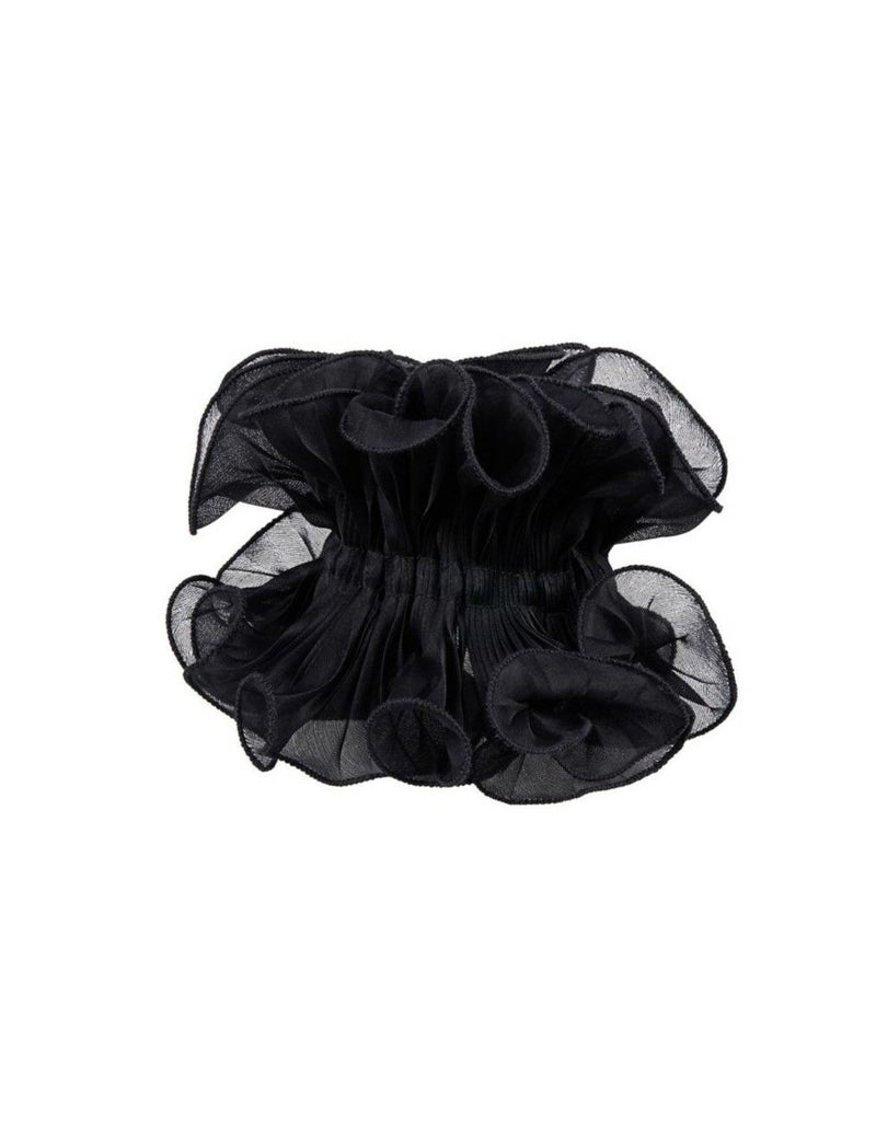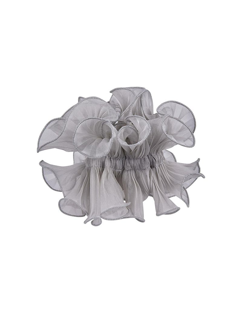 イタリアの職人技術と感性によって実現した、透け感のあるシルク100%のオーガンジーに、繊細なプリーツを重ねた、ふんわりと渦を巻くようなフォルム。
