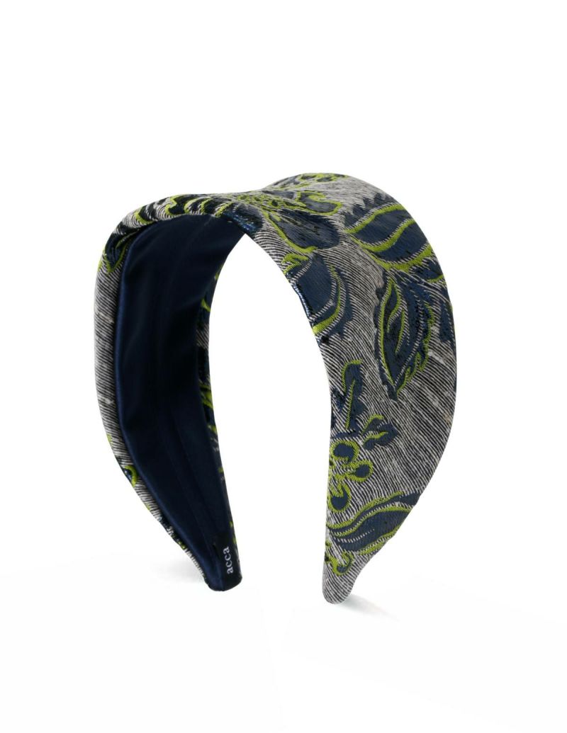・ジャガードの生地に、花柄刺繍が施されたワイドカチューシャは