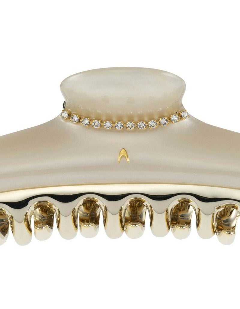 艶やかなボディにネックレスのようなクリスタルチェーンが煌めき、シックでエレガントな輝きを纏うクリップ。