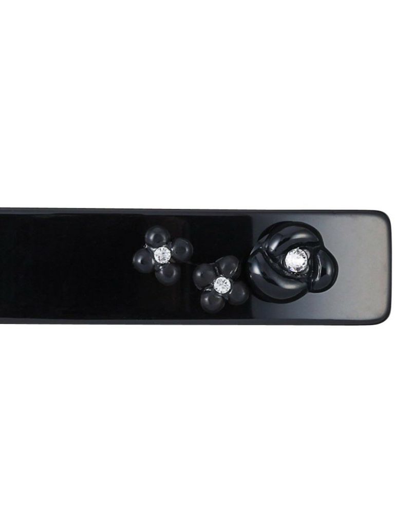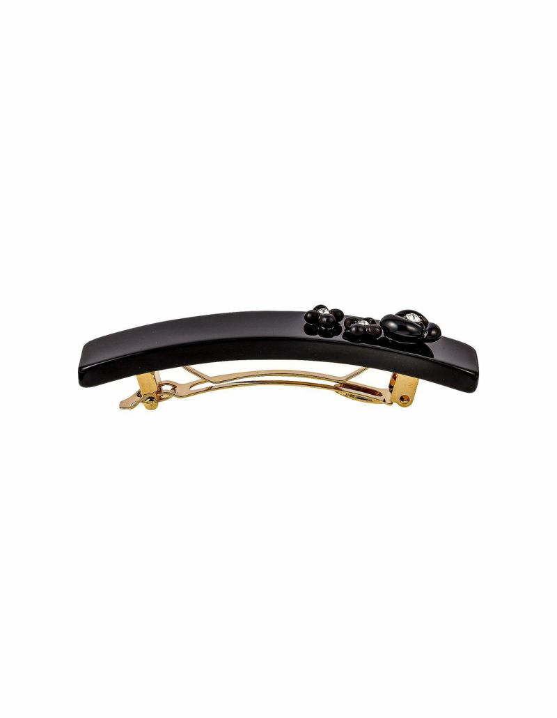 サイドをしっかり留めるハーフサイズのバレッタは、アシンメトリーに配置したフラワーがポイントになります。同シリーズのオールインワンクリップとのセットアップも可能。