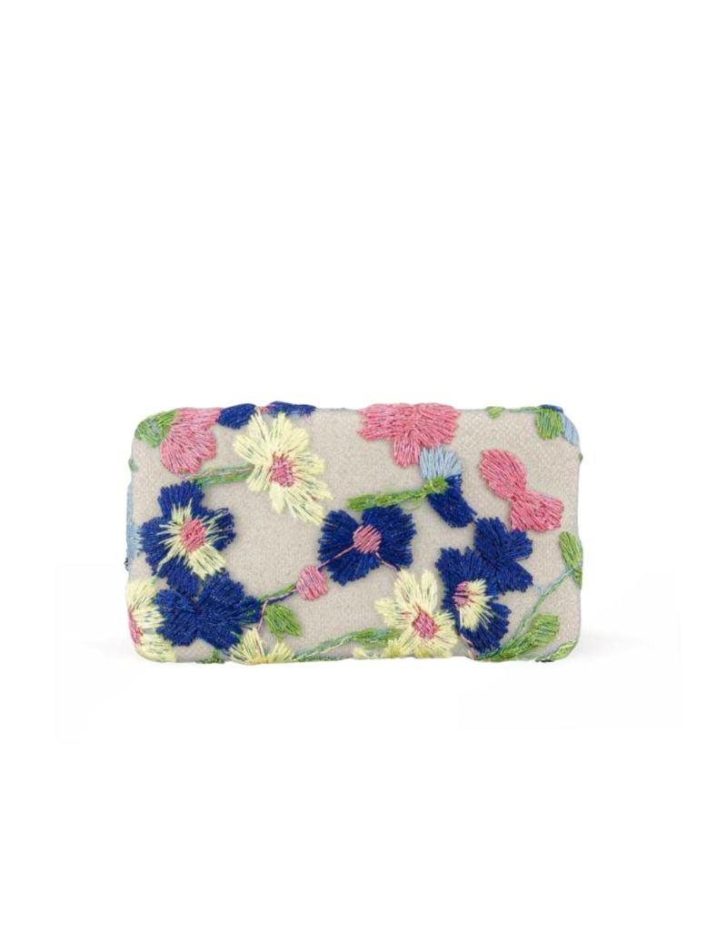 ・ペールトーンのフローラル刺繍のチュールをサンドベージュのベースにかけた膨らみのある華やかなバレッタは