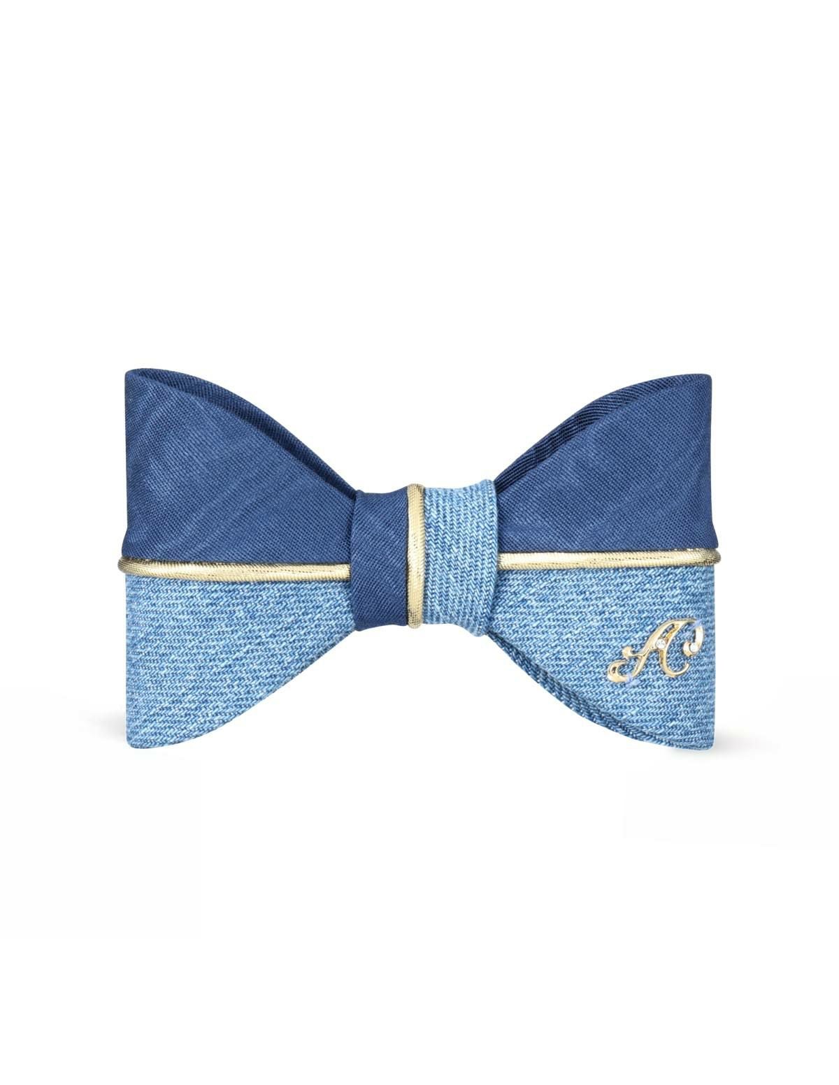 デニムアズールバイカラーリボンバレッタ