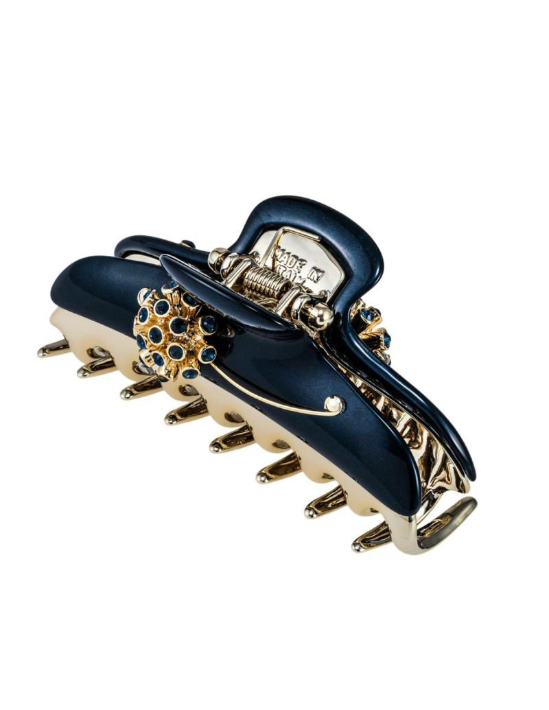 深みのある黒の樹脂にブルーのクリスタルが宝石のような光を纏う