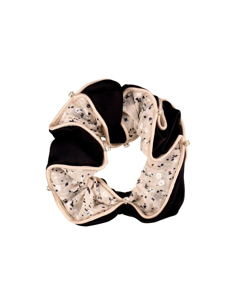 クールなブラックと、愛らしいムードのベージュのバイカラーを楽しめるリバーシブル仕様のシュシュ。