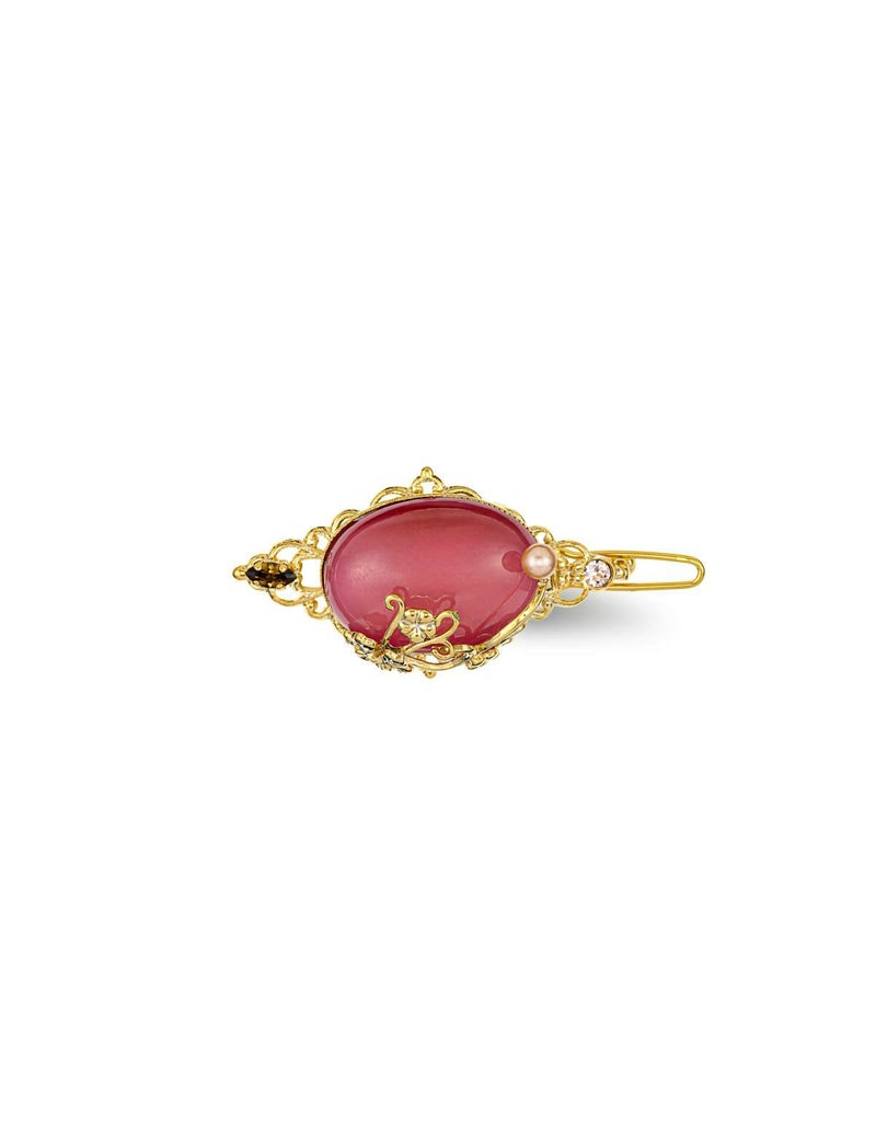 ピンクのビックストーンを繊細なゴールドのフレームがそっと包み込むスナップピン。