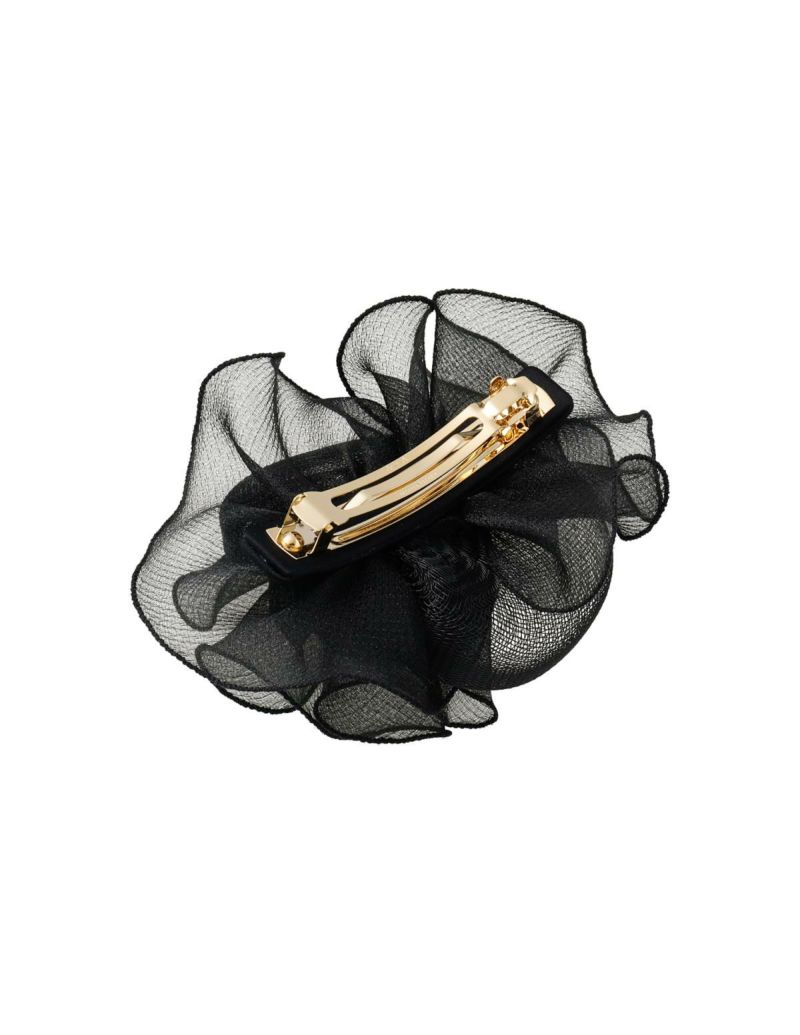 シアーな黒い花びらが髪を彩る‘NOIR BARRETTE(ノワールヴェール バレッタ)’。