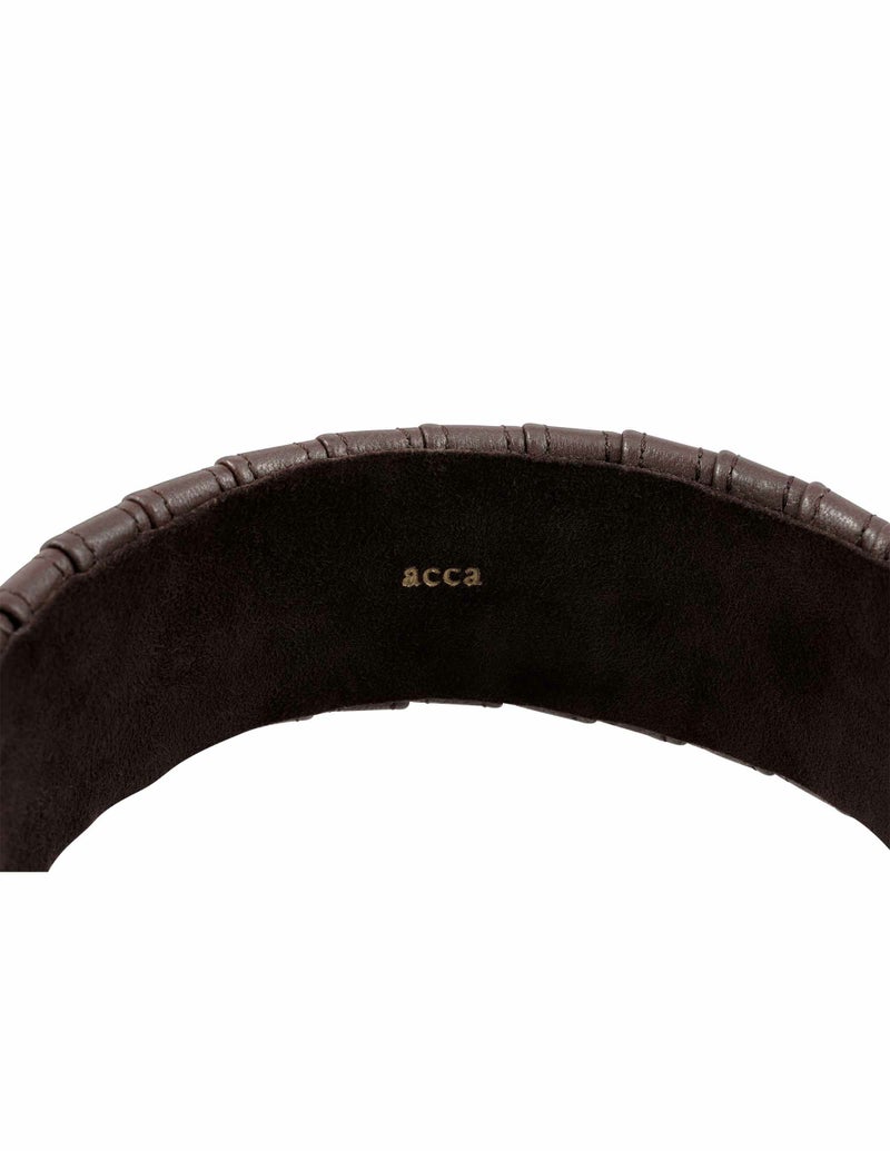 ・上質なレザーをたっぷり用いたワイドカチューシャは細部までこだわり着用感へも配慮したやさしい付け心地です。