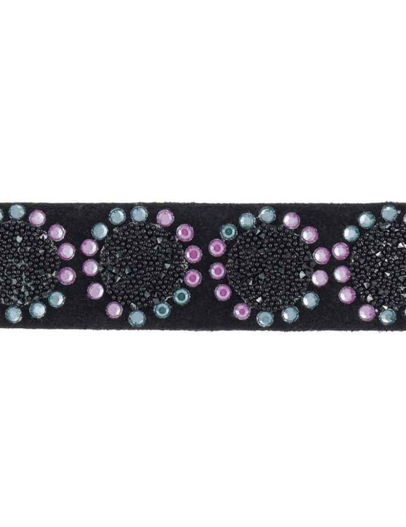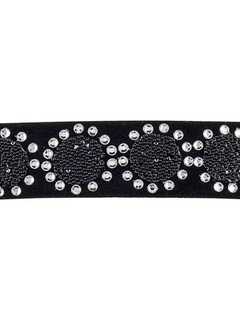 ・クリスタルファブリックの上にクリスタルのサークルが並び、上品でシャイニーなブラックの美しさが際立つバレッタ。