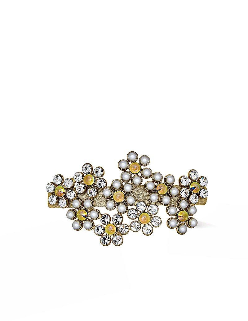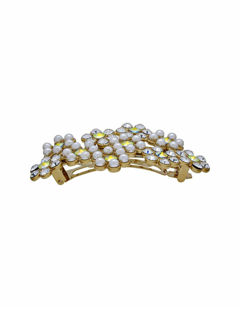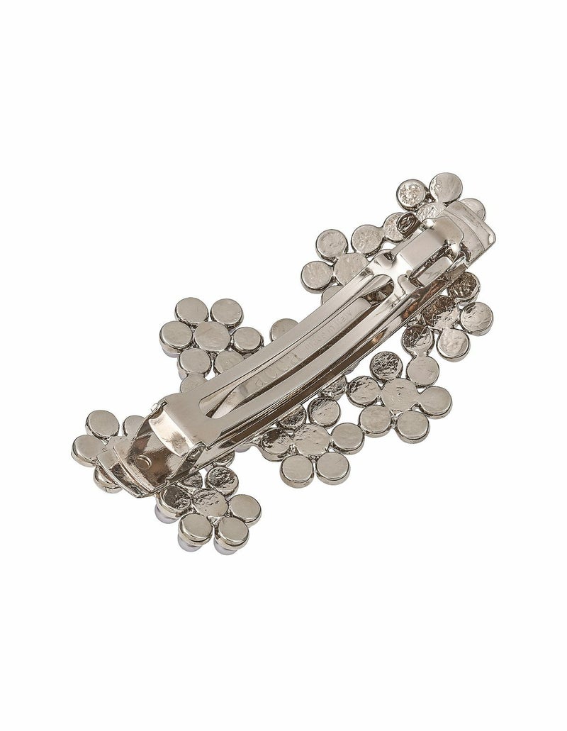 ・メタルにパールのやわらかいツヤ感を​プラスしたクールでエレガントなフラワーバレッタです。