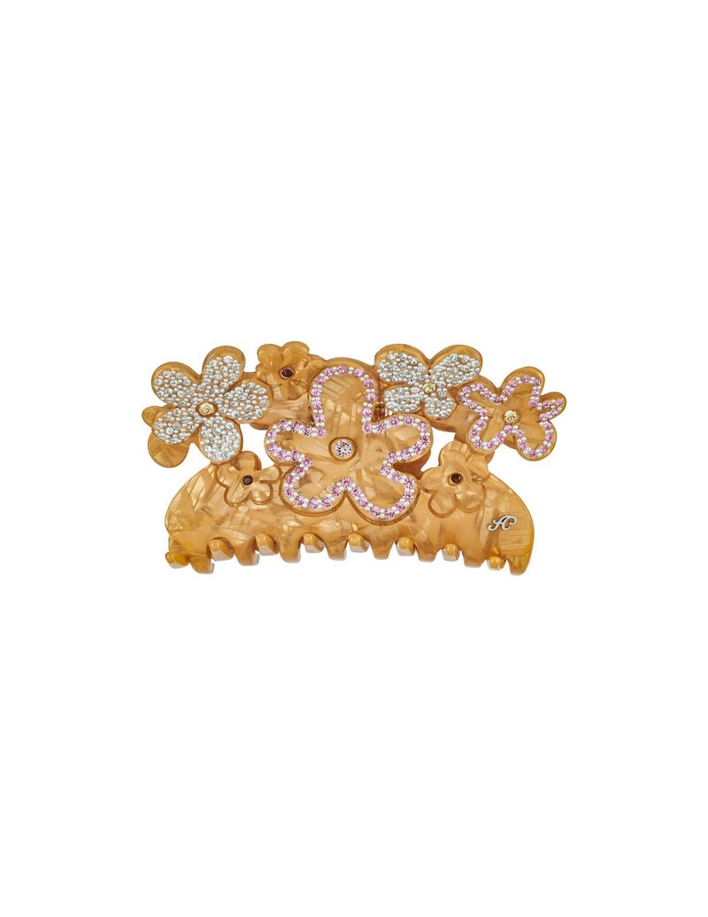 フラワーブーケに高揚感たっぷりのビジューのキャビアを鏤めて。ラブリーでゴージャスなラージサイズのクリップです。