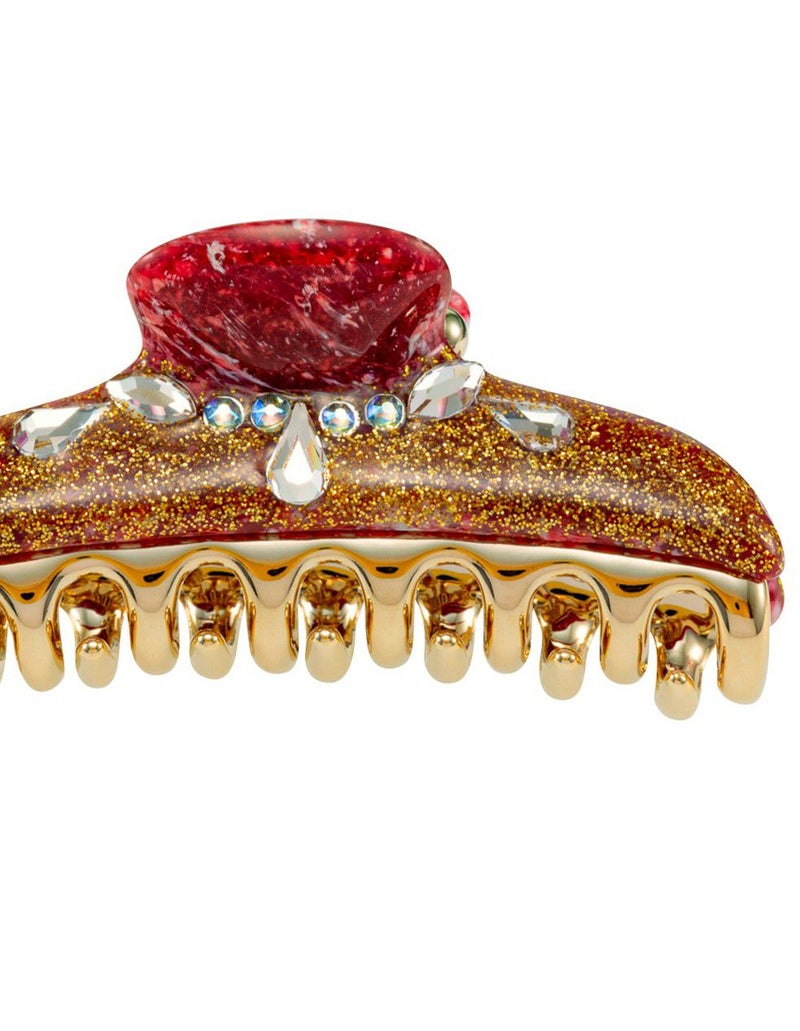 クリップをひとつONすれば、アクセサリーや華やかなメイクは要らないヘルシーでシャイニーなリゾート風ヘアに。フルーツの雫とみずみずしいクリアなゴールドラメコーティングをまとったクリップは、太陽を浴びたエネルギッシュでジューシーにかがやく髪を即ゲットできる。